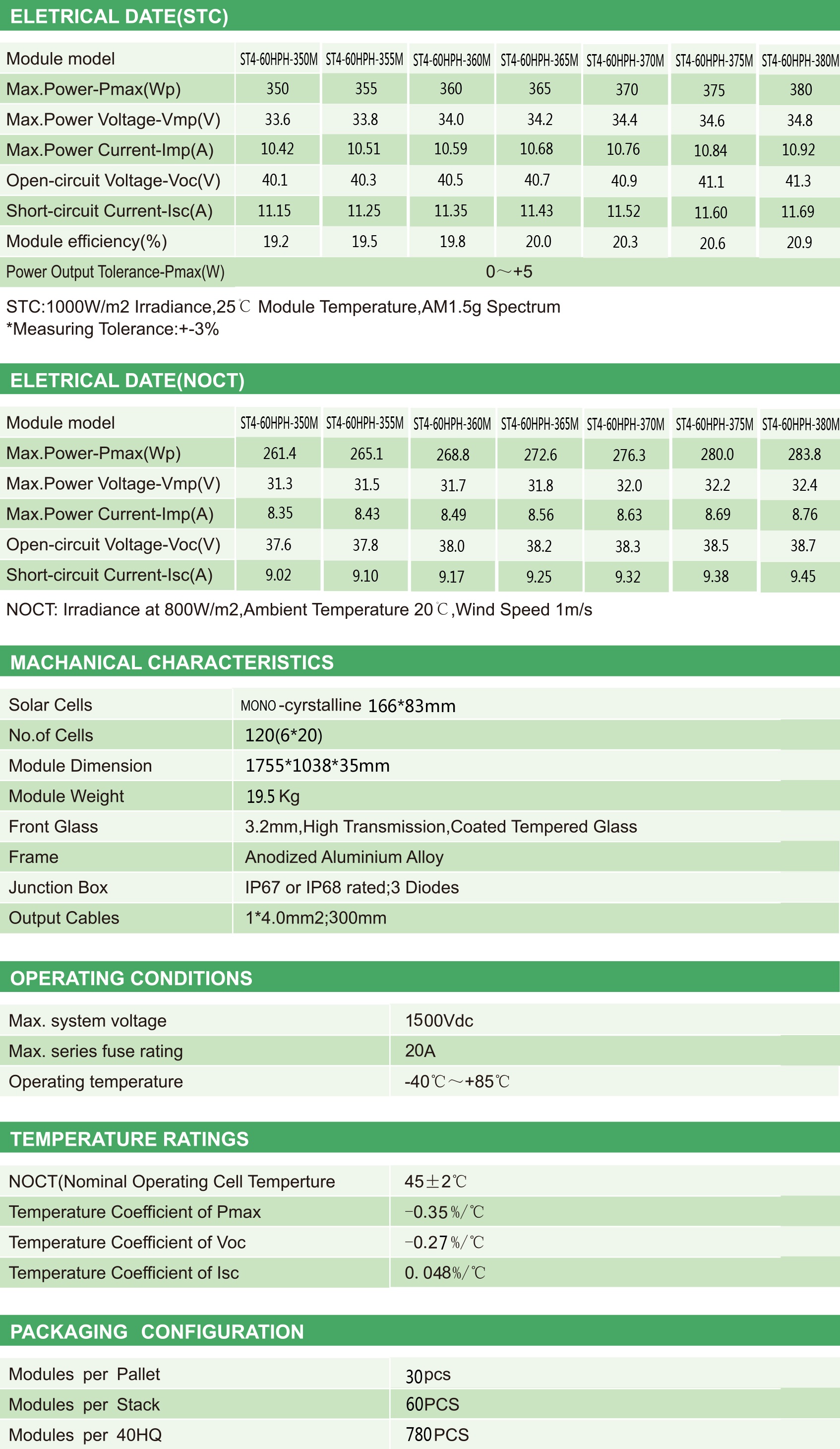 Maximum power up to 380W, conversion efficiency up to 20.9%