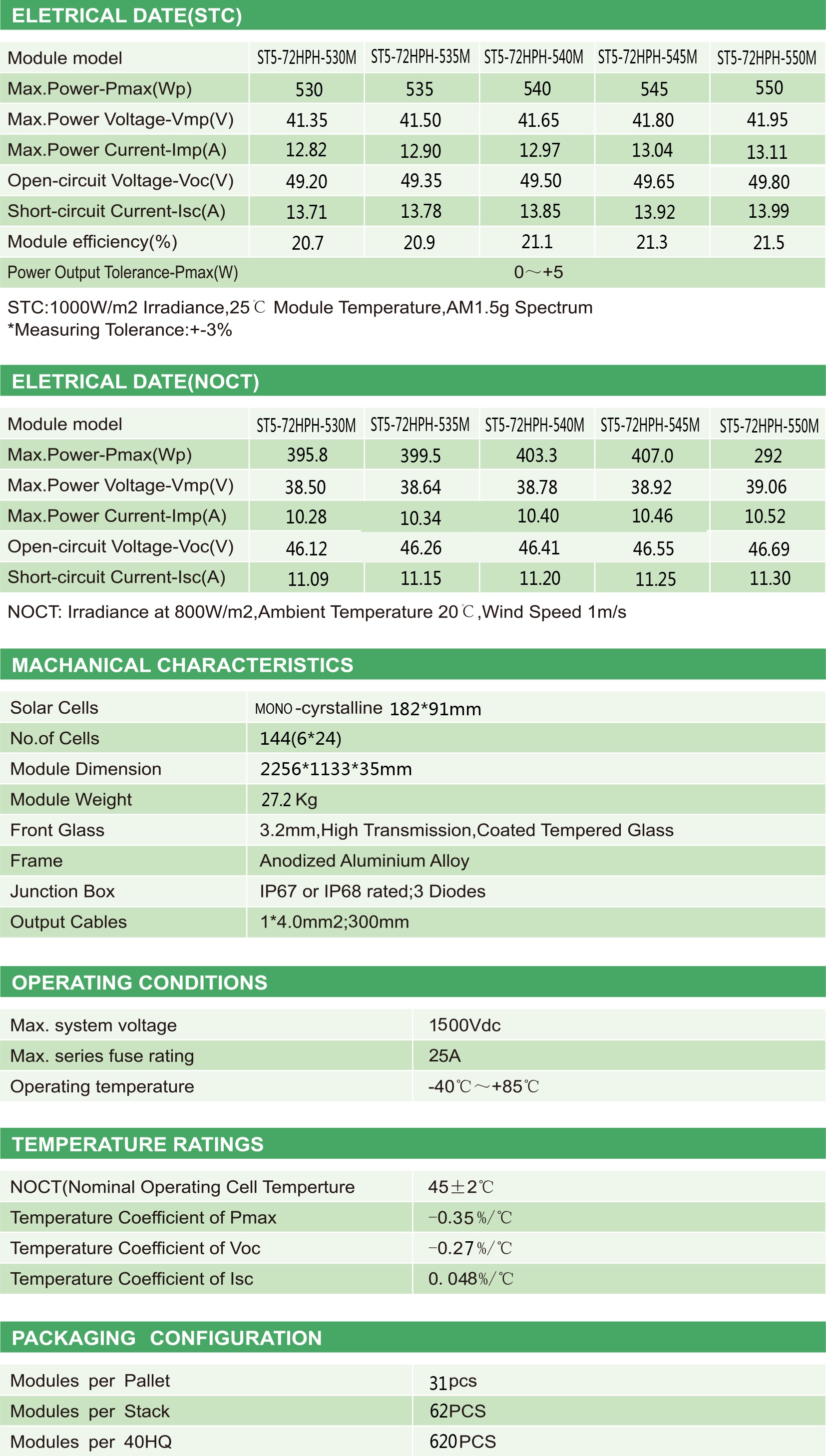 Maximum power up to 550W, conversion efficiency up to 21.5%